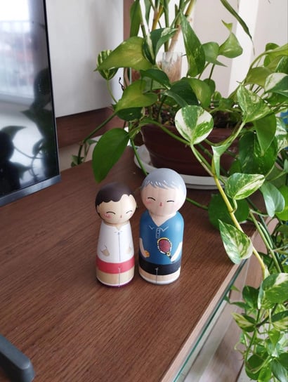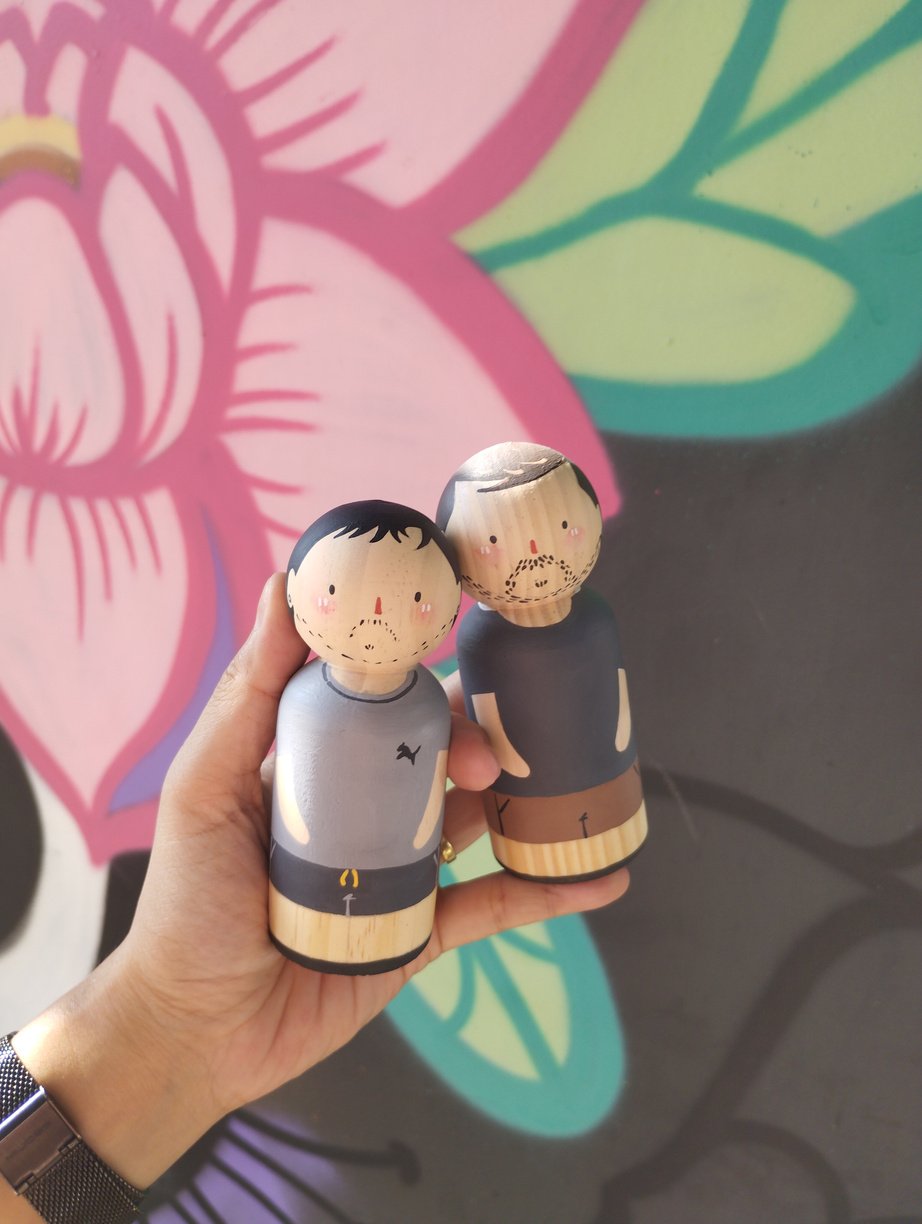 Aqui, faço principalmente bonecos de madeira 100% brasileira, pintados à mão e personalizados.